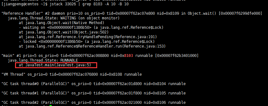 4. 用jstack打印出父进程的栈,从而找到pid为8103的这个线程的栈信息。