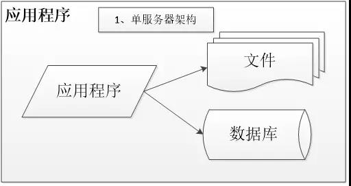 最初的架构,应用程序、数据库、文件都部署在一台服务器上,如图: